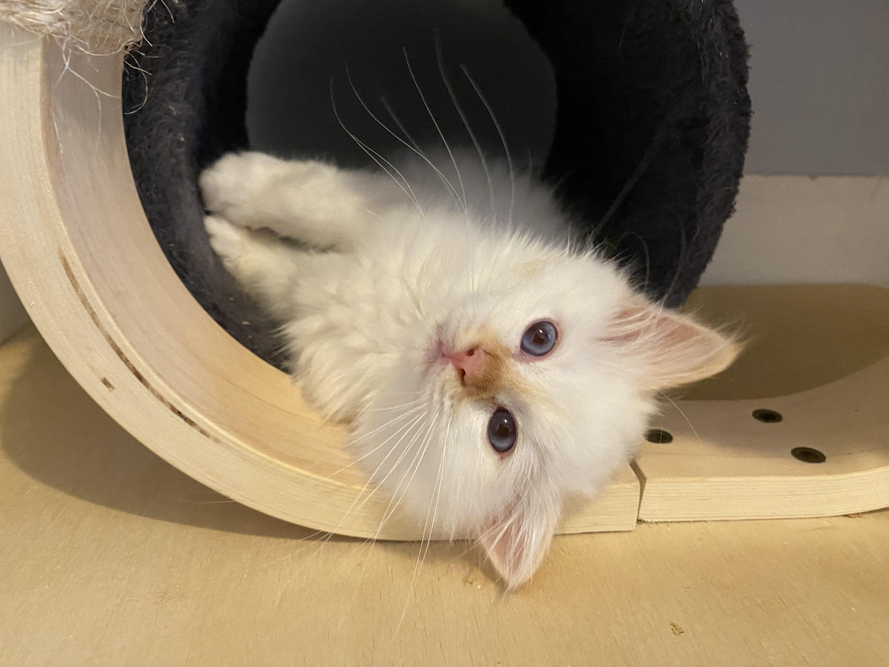 Pour son bien-être nous lui recherchons en priorité et idéalement un foyer avec un autre petit compagnon félin pour jouer ensemble, car il s'épanouit actuellement auprès de sa soeur AKYRA et de sa maman, YELLOWSTONE DE LA CIGOGNE SACREE.